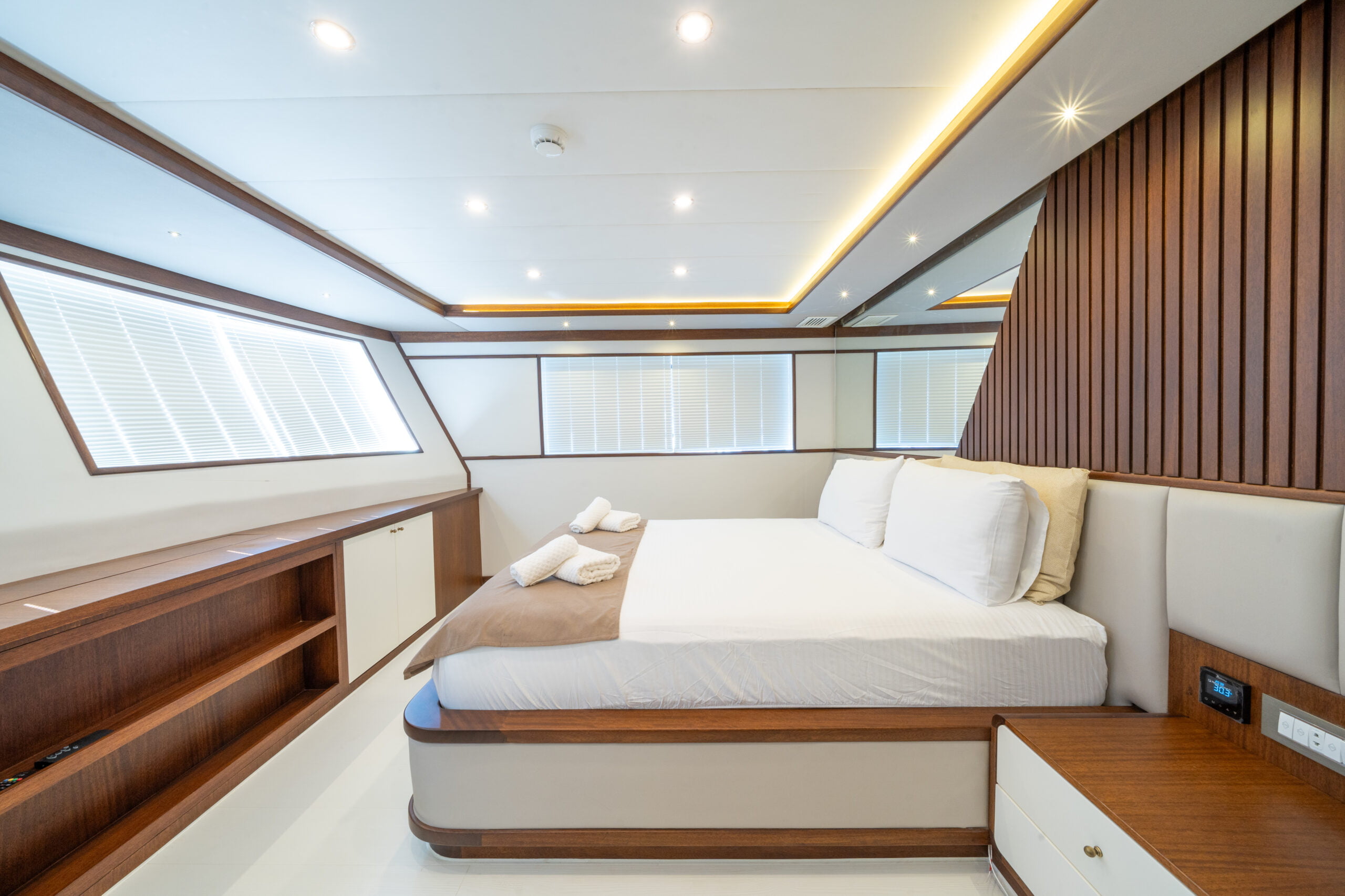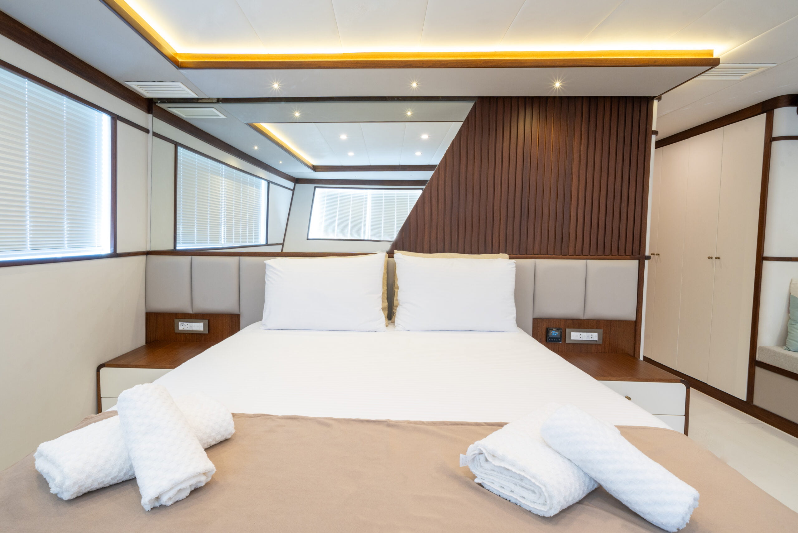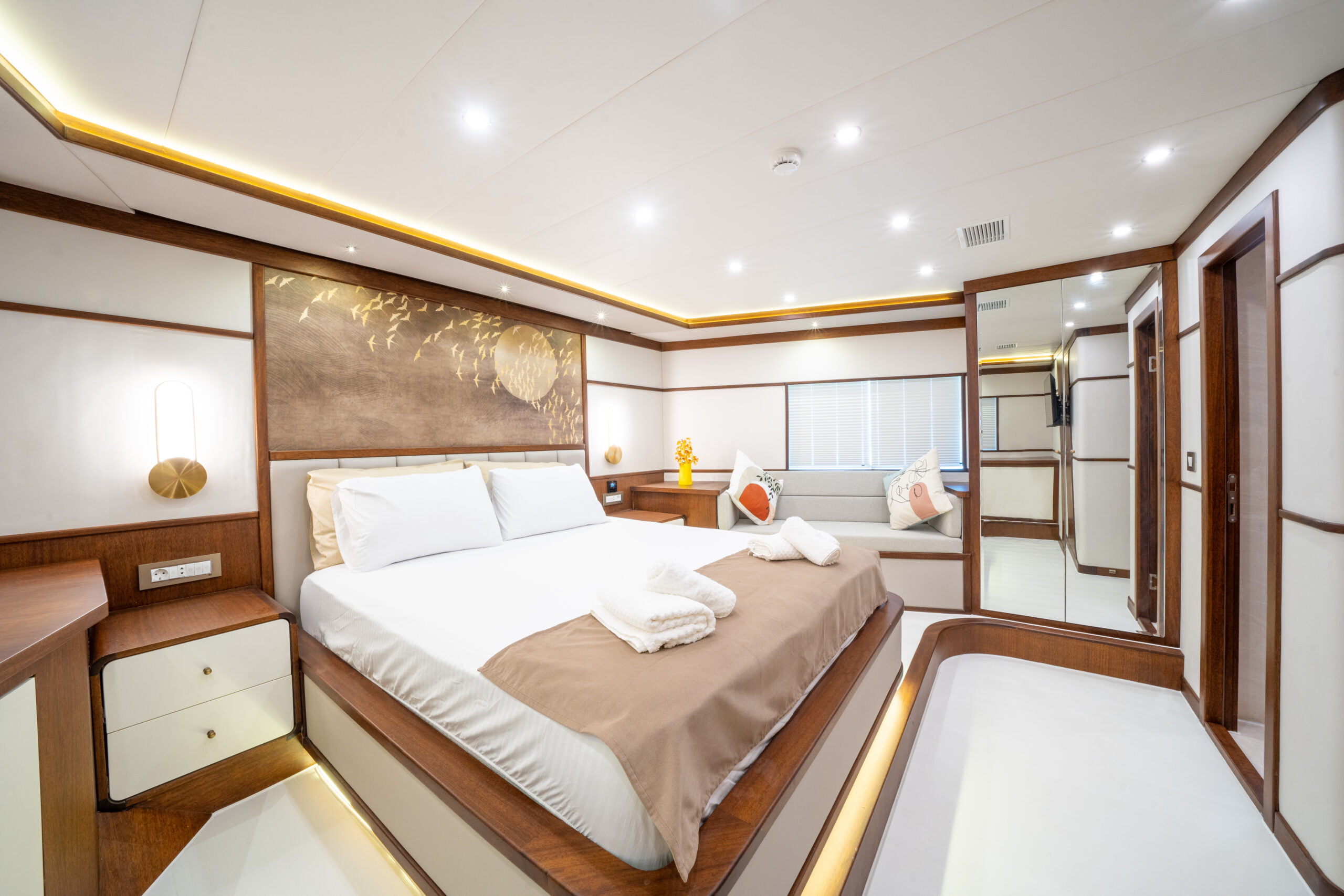 It is 23 meters long and 6.60 meters wide. Completed in 2023, it offers guests a wonderful blue cruise with luxury and comfort in mind.
